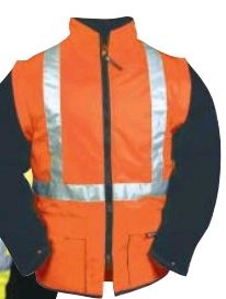 COMPOSANTS TEXTILES Tissu imperméable respirant jaune fluo/marine ou orange fluo/marine Bandes rétro-réfléchissantes microbilles à coudre de 5 cm Doublure matelassée ouate Manches en polaire marine, amovibles par glissière CONFECTION Fermeture à glissière centrale jusqu'en haut du col Col officier, intérieur matelassé 2 ouvertures d'aisance latérales, fermées par pression, en bas du gilet 2 poches basses plaquées avec rabat 1 poche portefeuille intérieure fermée par auto-agrippant Support Velcro rond pour pose de logo (8cm de diamètre) Pas de parties métalliques apparentes TAILLE Taille S à 4XL Kit de fixation Zipal® NORMES ISO 20471 EN 14058