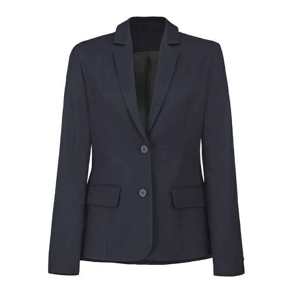 CARACTERISTIQUES Veste femme doublée Epaulettes Col tailleur 2 poches poitrine intérieures Poches basses à double passepoil et rabat 3 boutons sans boutonnière en bas de manche Fermeture par 2 boutons Découpe devant et dos MATIERE 73 % polyester 25 % viscose 2 % élasthanne - 220 g COLORIS Anthracite, Marine, Noir TAILLE 34 à 60