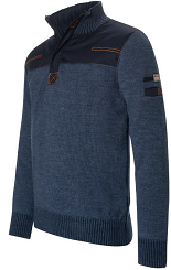> PULL COL MONTANT ONTARIO ZIPPE JEANS CHINE LAINE/ACRYLIQYUE 85/15
